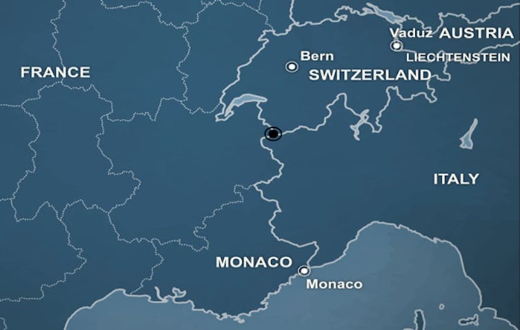 Le point noir est un point triple entre la France, la Suisse et l’Italie: de ce point précis, on peut atteindre trois pays en faisant un pas si l’on choisit bien sa direction. Vector4 Free, fourni par l’auteur